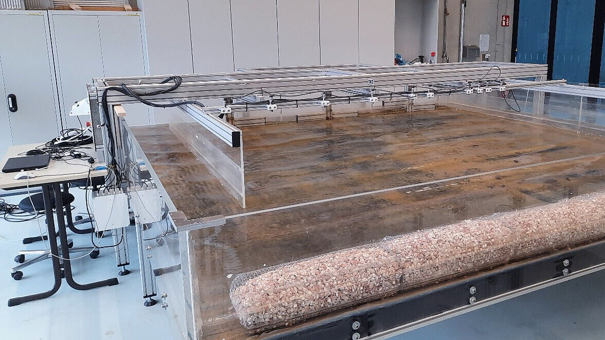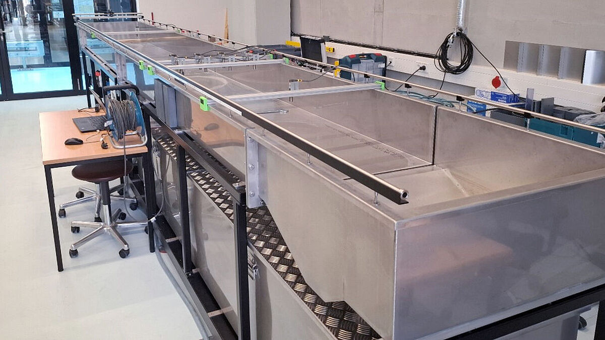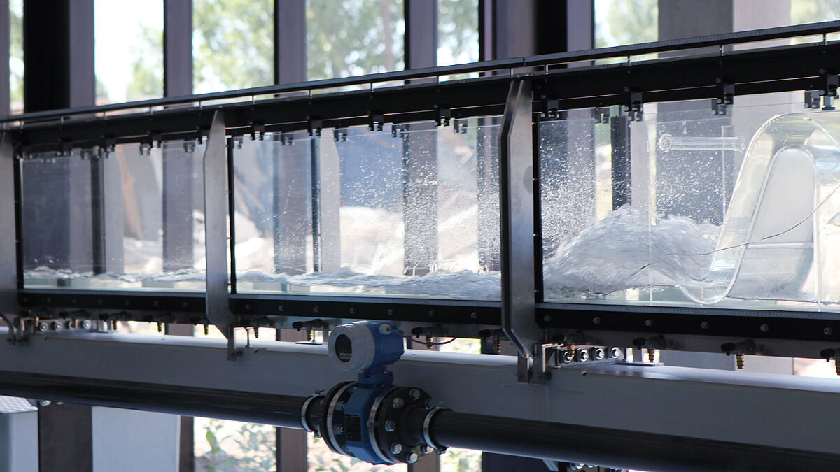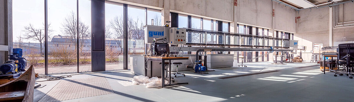 Der Wellenkanal wird verwendet, um Wellenbewegungen in kontrollierten Bedingungen zu erzeugen und zu untersuchen. Aktuell befindet sich der Kanal im Umbau und wird durch ein „intelligentes“ Wellenpaddel ergänzt.