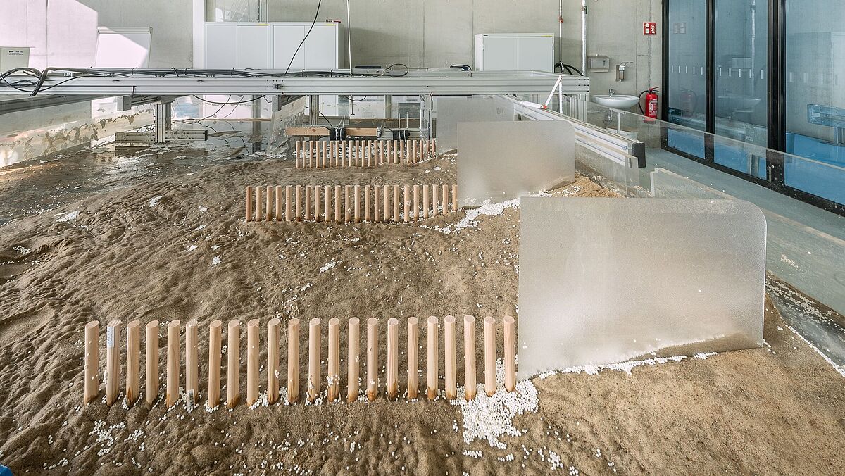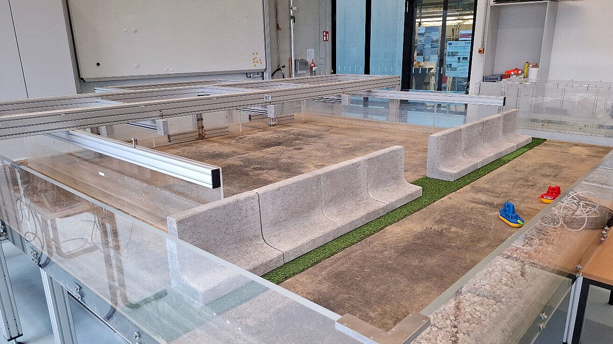 Das Wellenbecken verfügt über drei Wellenpaddel und wird verwendet, um Wellenbewegungen unter kontrollierten Bedingungen zu erzeugen und zu untersuchen.